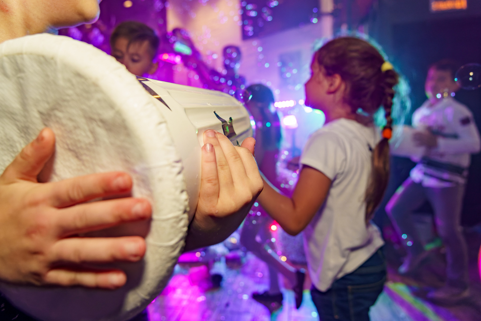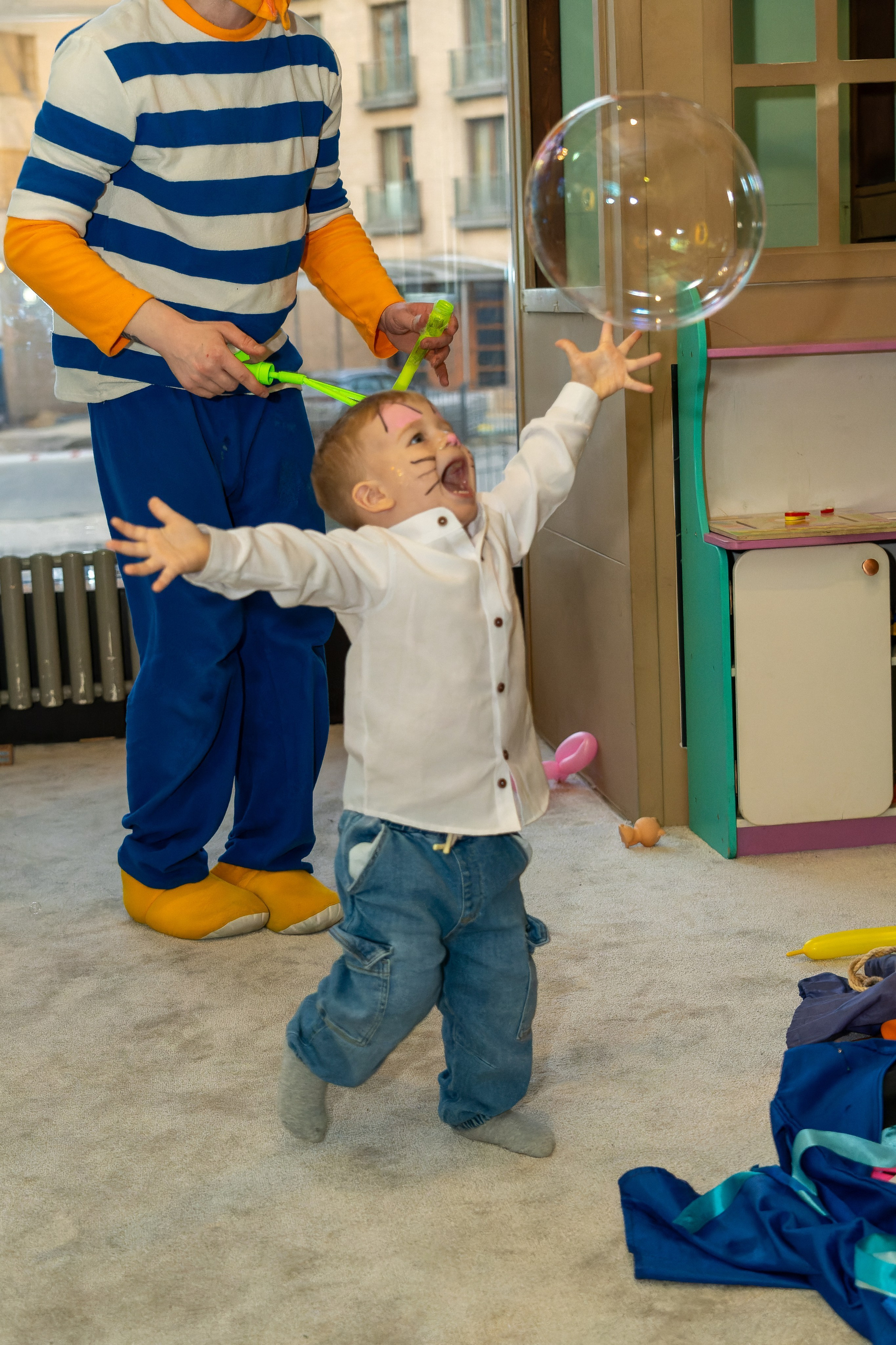 - Работаем в любых условиях — будь то шумный детский праздник в саду, весёлый день рождения в кафе или ресторане. Умеем находить подход к каждому ребёнку и создавать непринуждённую атмосферу для съёмки.